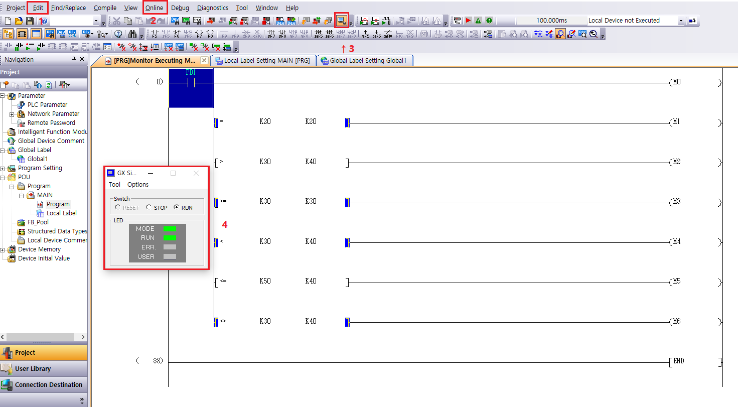 래더입력동안 래더보기에서 커서이동 : ctrl + 커서키